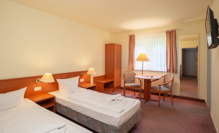 Im Waldhotel Schöneiche bieten wir Ihnen drei praktische Zimmerkategorien, die auf Ihre individuellen Bedürfnisse zugeschnitten sind. Unsere robusten und zweckmäßig eingerichteten Zimmer sind der ideale Rückzugsort nach einem langen Arbeitstag oder einer Erkundungstour durch die Natur.